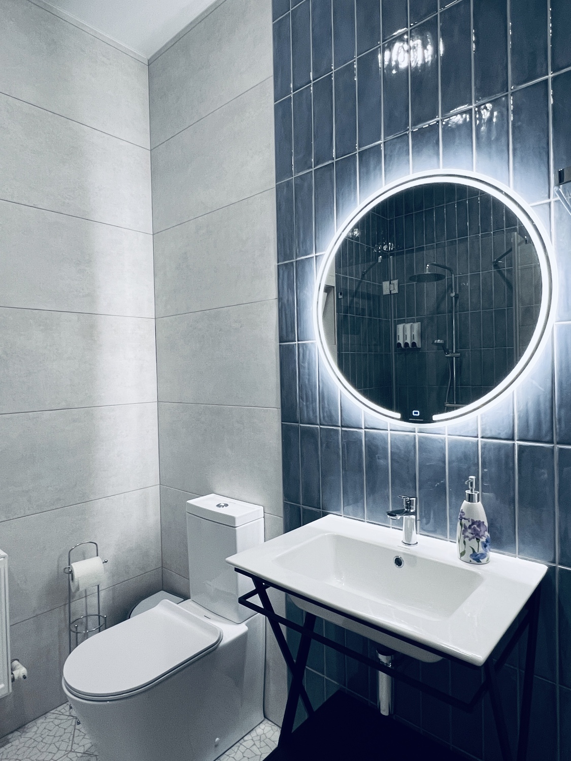 Комфортная парная, обшитая липой, душ, холодная и горячая вода, комната отдыха с лавандовым потолком, полотенца, шампунь, кондиционер для волос, гель для душа, шапочки, руковица, дрова.